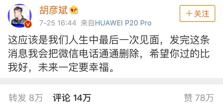 网友都觉得两个人还有复合的可能,纷纷欢呼雀跃,但随即胡彦斌就发了一条微博否认复合。