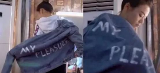 马思纯则穿着情侣外套接受采访,外套背面的英文是这样的: