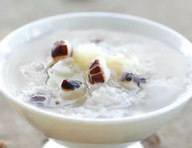 做法:将新鲜的甘蔗去皮榨汁备用,将粳米、百合放入水中煮1小时,待煮成粥后,将蔗汁兑入锅中,文火10分钟即可。本品养胃生津,润肺止咳。
