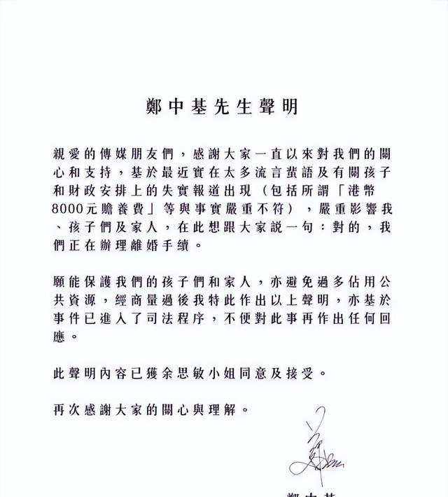 婚变的消息一出,舆论炸锅。8000元赡养费,6位数抚养金,家事法庭,父亲出庭。每一个细节都被放大,每一句声明都成了焦点。外界质疑声一浪接一浪。有人说郑中基太抠门,有人说余思敏善于打舆论战。还有人翻出旧账,怀疑女助理插足,怀疑余思敏“逼宫”。流言蜚语,真假难辨。