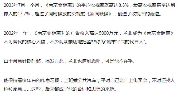孟非与《南京零距离》的迅速火爆,很快引起了国内不少媒体的关注。