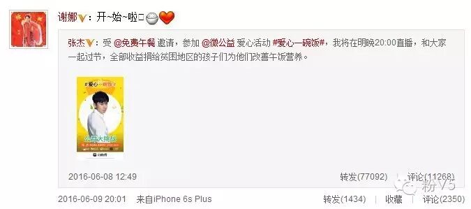 6月9日晚8点,张杰在微博进行公益直播,现场化身“家庭煮夫”大秀厨艺,做了自己最爱吃的四川豆瓣鱼以及拿手菜红油抄手。最后,为了配合端午节的节日氛围,他还兴致勃勃地煮了粽子,而此次直播的全部收入都将作为公益善款捐给免费午餐!另外,张杰也在微博上邀请了老婆谢娜继续挑战,让爱心接力下去。据悉,张杰本次直播现场观看人数与打赏金额都高达2000多万,打破了一直播最高纪录。