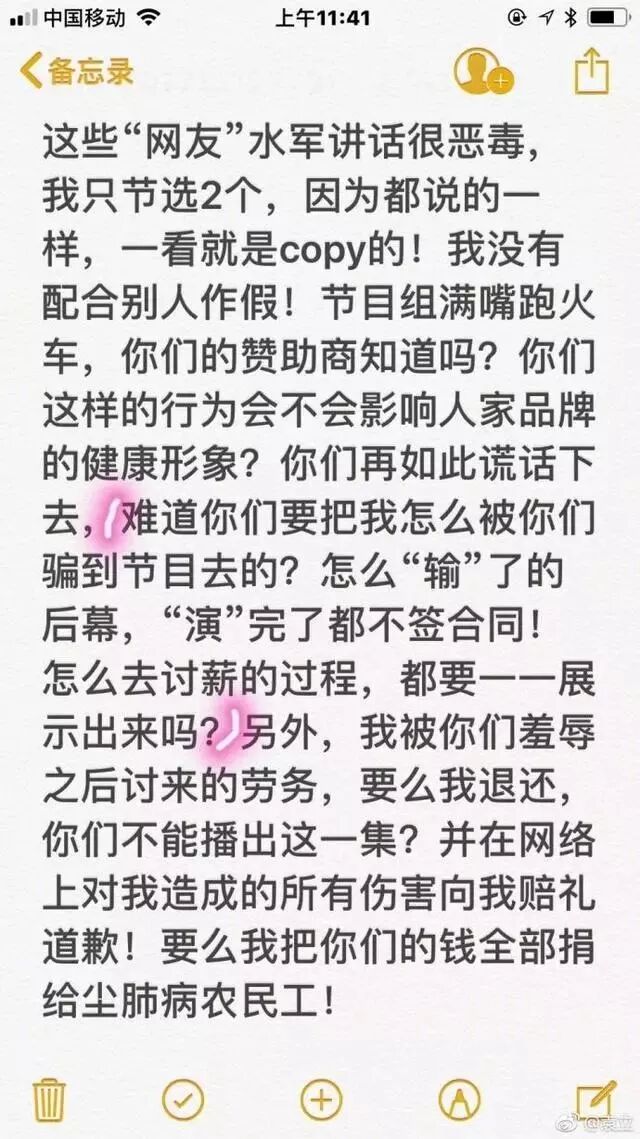 顺便找节目组催讨劳务费,用于尘肺病农民工的孩子的助学及家庭困难补助!