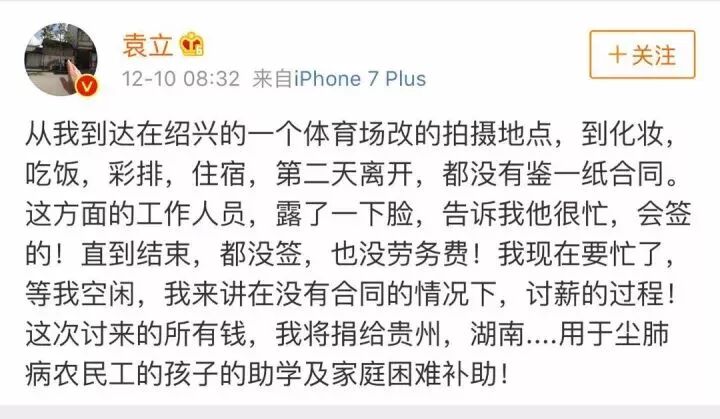 12月10日,也就是今天早上7点多,被限制两天不准发言的袁立,最后放了一个大招: