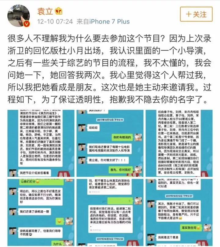 袁立把当初小导演接洽自己所有的聊天记录全部贴出来了,于是惊天内幕浮出水面。