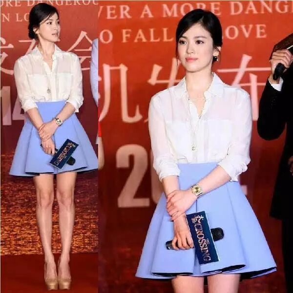 建议手臂粗的姑娘选择喇叭袖或中长袖来遮挡粗手臂,乔妹的硬伤也是手臂粗,她只有穿半袖,身材和脸蛋才不违和。