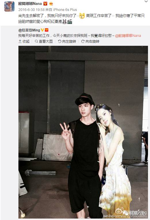 日常生活中娜比虽然暖心,但她也在微博上黑过很多男神,然而却是引来一连串的有爱互动,比如她曾在微博上发了罗志祥锅锅这么一张“帅照”。↓