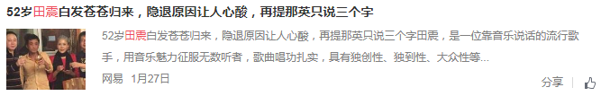 在多数媒体的眼中,这个曾与那英争斗数年、身患重病、满脸老态的田震,早已没有当初的辉煌,而是逐渐衰落,成了一个悲惨的过气之人,甚至有传言说田震已经病逝……