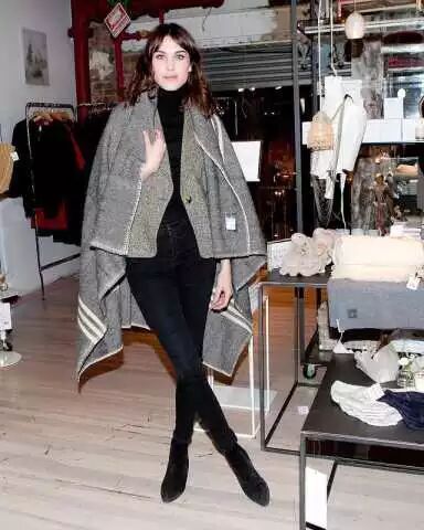 斗篷作为秋冬季的主角单品,一般只要掌握上宽下窄的原则,就能很好的起到显瘦效果啦,例如: