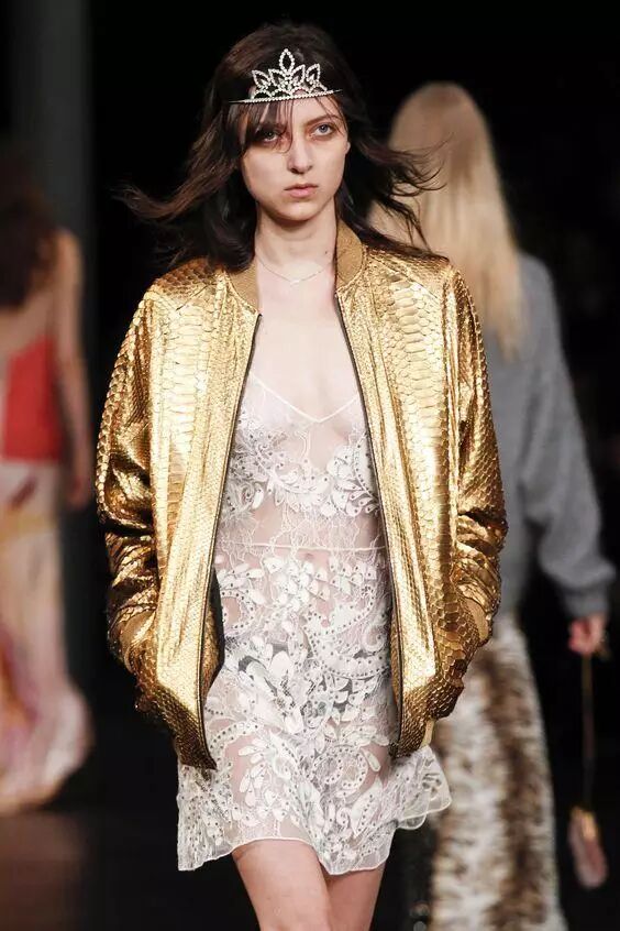 款式不变,可以在面料上下功夫。带有金属质感的夹克材质,能让你在人群中自带追光灯,时尚时尚最时尚~