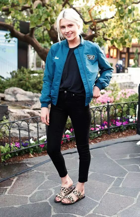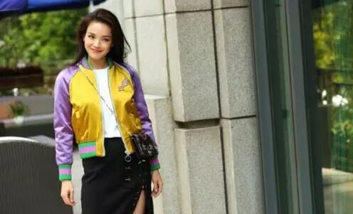 满屏的少女气息有没有!女神身上穿着颜色鲜艳的拼接飞行夹克,瞬间整个人都明媚了起来。