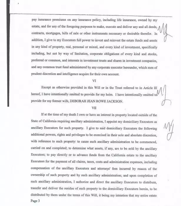 针对最有可能争产的前妻黛博拉-罗,杰克逊的遗嘱特别声明他是“故意”(intentionally)不给任何财产给其前妻,这就使得黛博拉-罗无法以前妻的身份来争产。当然如果黛博拉-罗与杰克逊还是夫妻关系,杰克逊就难以剥夺黛博拉-罗的财产继承权。