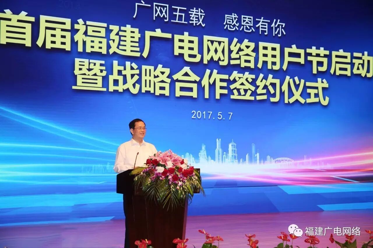 省政府副省长黄琪玉,省政协副主席李红,省政府副秘书长赖碧涛,省委宣传部常务副部长蔡小伟,福建广电网络集团党委书记、董事长张远上台启动2017首届福建广电网络用户节活动。