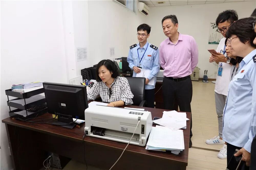 闵行区税务局主要负责人带队,到上海长发购物中心有限公司调研深化增值税改革工作首日企业开票情况。