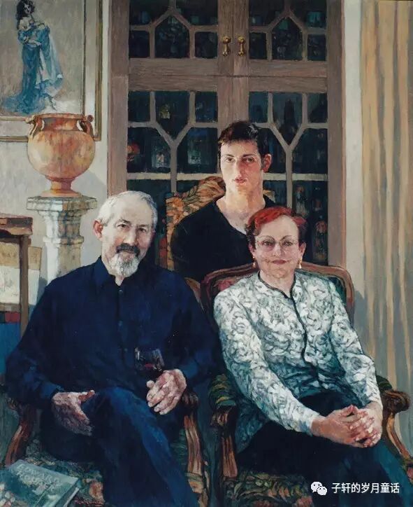 曾買过我的几幅油画,后来希望我为他们一家三口画幅肖像。