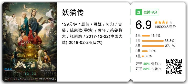 由陈凯歌导演的《妖猫传》在12月22日上映,
