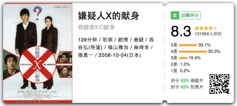 这是改编自日本知名作家的东野圭吾的同名小说。