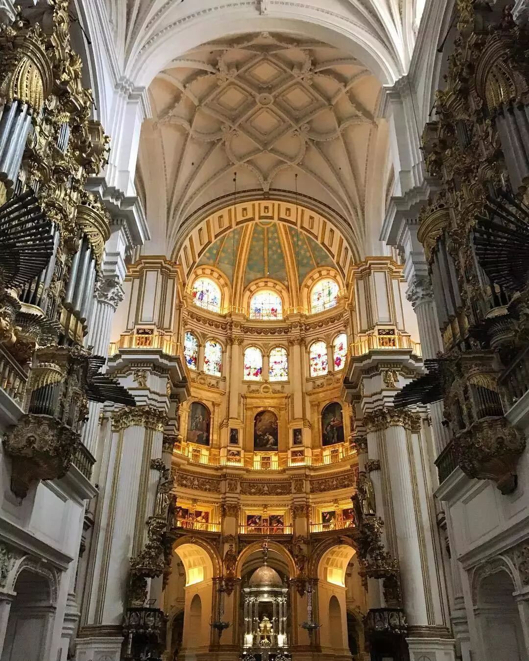 格拉纳达大教堂建在原清真寺的地基上,从1523年开始建造,到1704年才完工。天主教君主伊莎贝拉和费迪南德就葬在这里,教堂的精致与恢弘让人叹为观止。