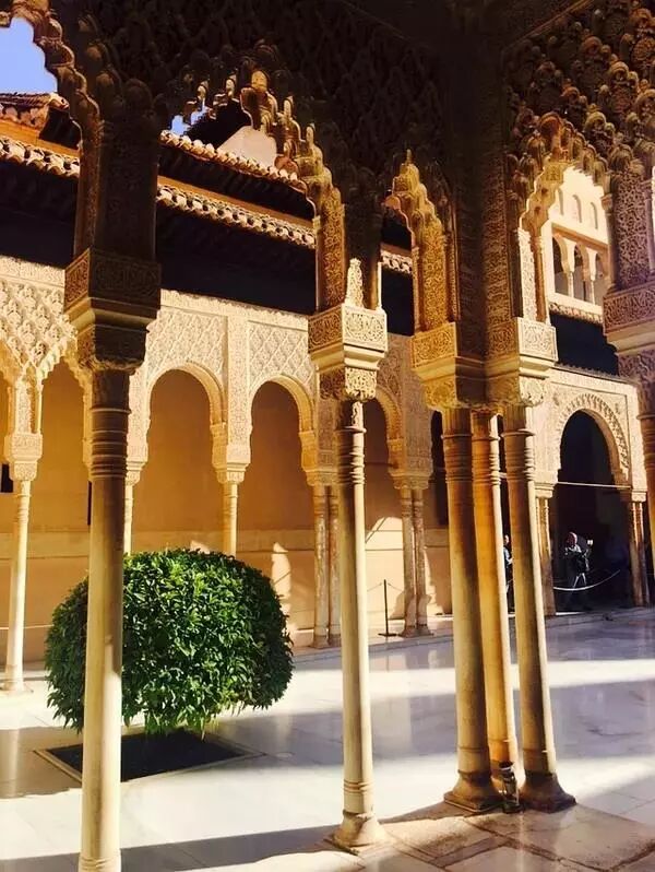 宫殿由众多庭院、泉水和绿植长廊链接起来。而在宫殿内部,精美瓷砖和雕刻随处可见,难以想象当时阿拉伯人花费了多少心思。