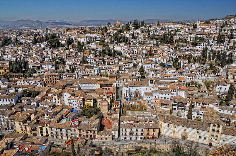 格拉纳达坐落在内华达雪山脚下,你站在城中,便可以看到雪山在阳光下熠熠生辉,仿若海市蜃楼美得很不现实。