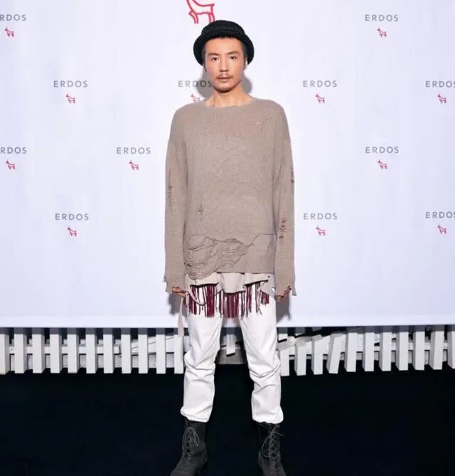 灰色调原本是会给人一种稳重甚至有些沉闷的印象的,但是朴树这件毛衣上面布满了无数的破洞设计,里面红色的打底衫让大面积灰色带来的单调感一扫而光。吸睛程度不用多说,这件毛衣甚至还是紧身的设计,把朴树有些嶙峋的身材包裹得严严实实,意外有种骨感美。