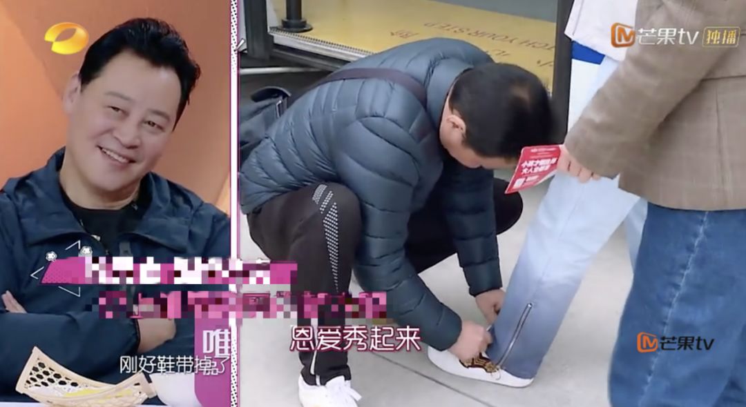 出去玩下车时,焦妈的鞋带送了