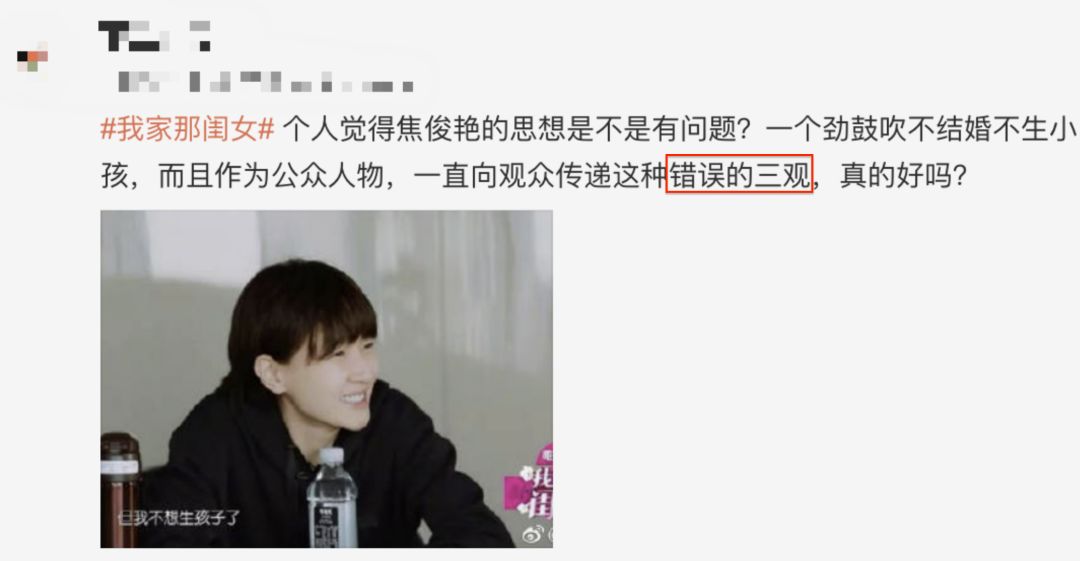 然而伴随着节目的播出,却偶然看到网上出现了这样的评论,抨击她思想有问题,三观不正: