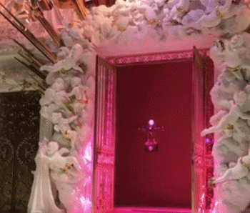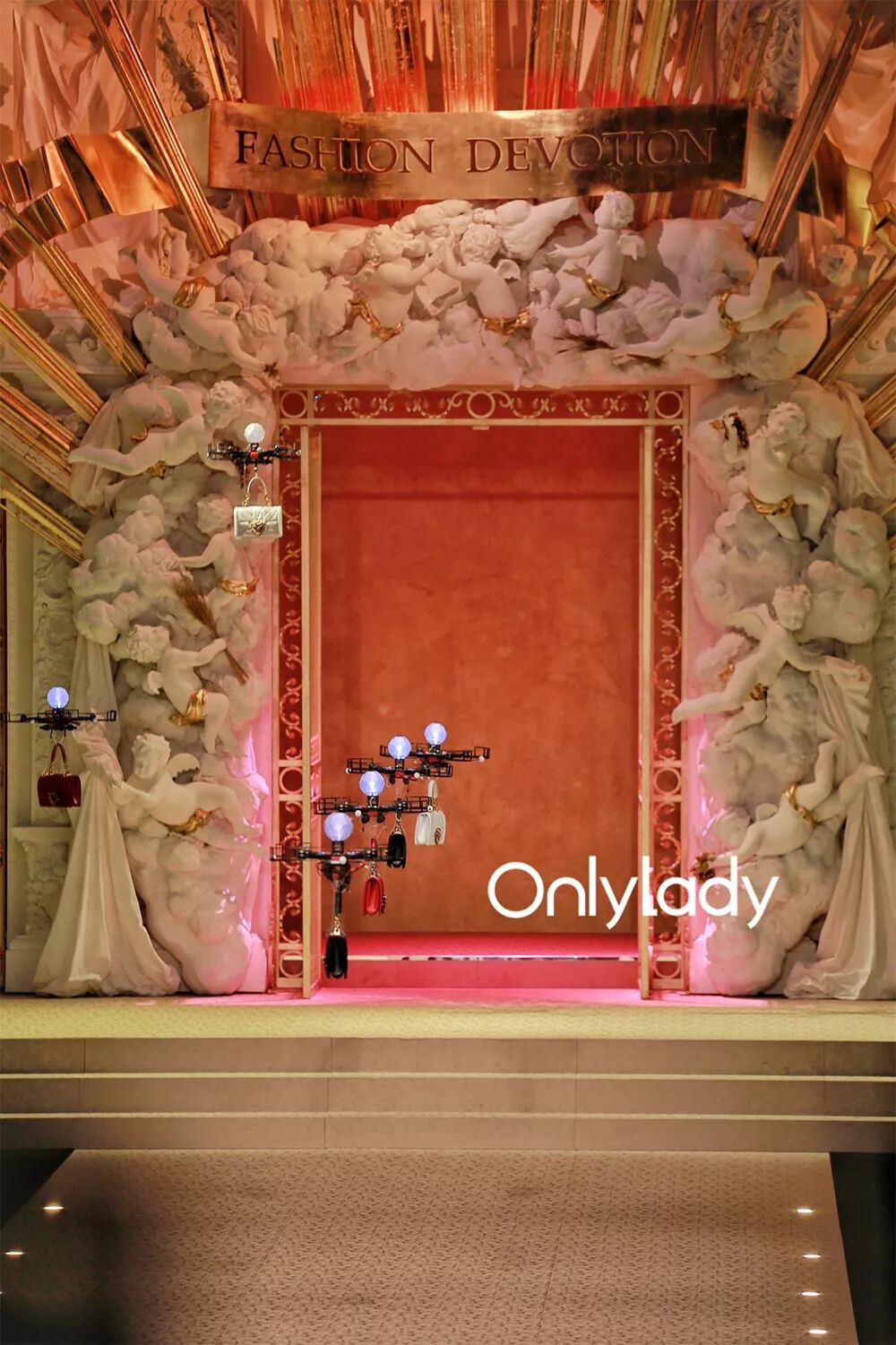 大秀秀场被设计成了一个满是少女心的粉色宫殿,Fashion Devotion (愿为时尚奉献一切的热爱)