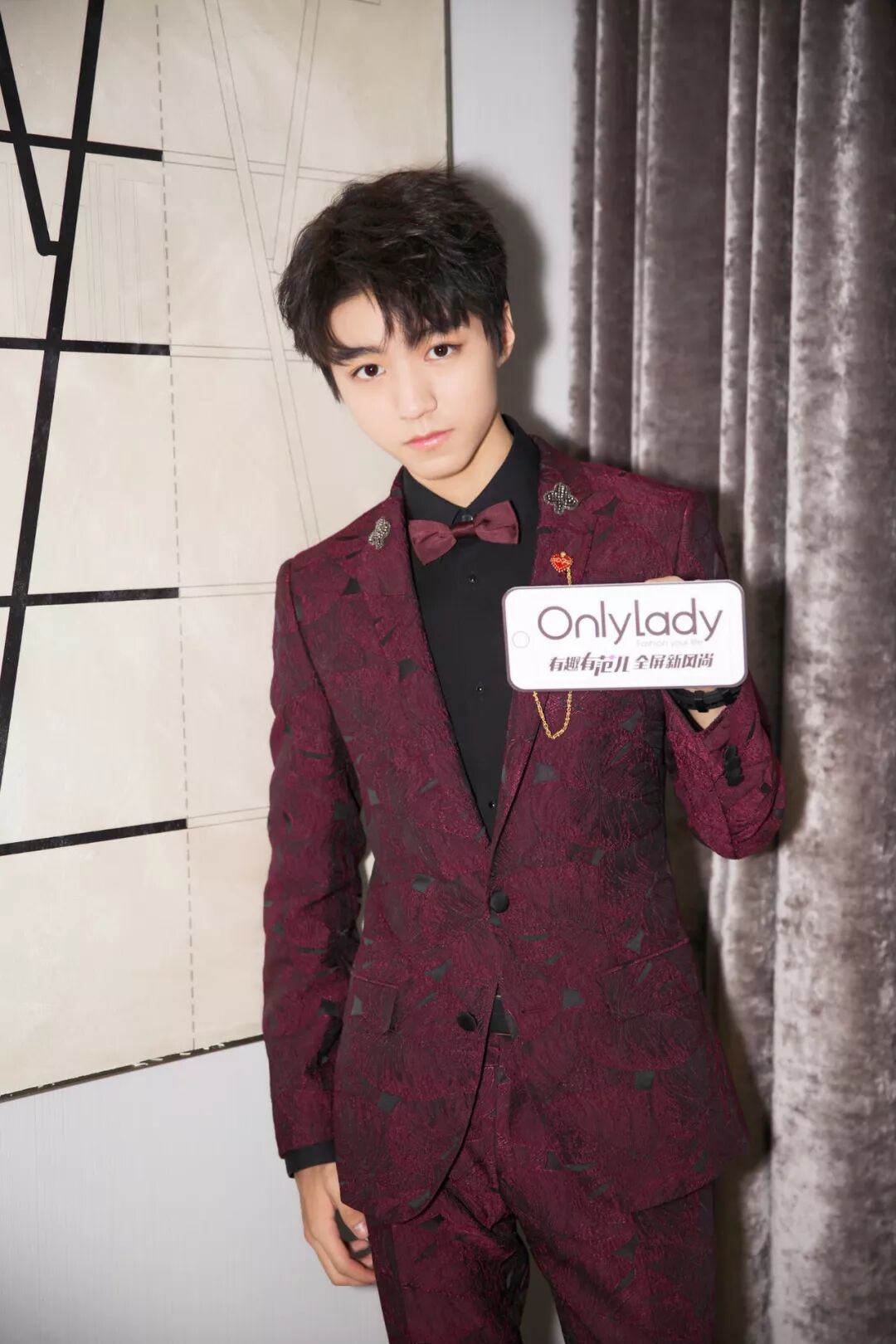 穿着Dolce&Gabbana 2018春夏系列酒红色刺绣西装内搭黑色衬衫是精致东方少年。化身优雅小王子的小凯绅士风格尽显~