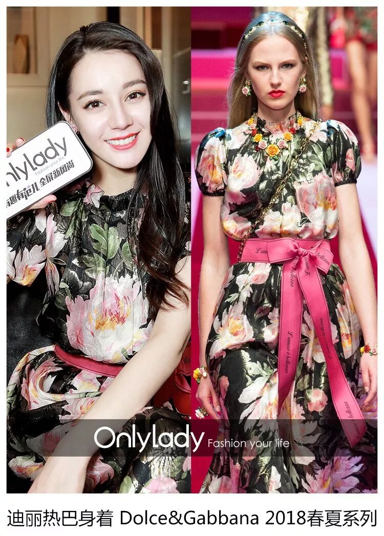 身穿Dolce&Gabbana 2018春夏系列印花连身裙的热巴看上去精致又大方~俏皮清新的气质也完全没有被繁复的西西里式印花设计遮盖住,长裙的优雅感在热巴身上得到了最大的发挥。