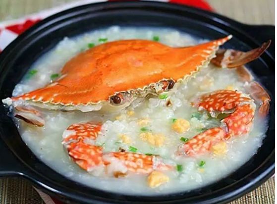 很多人都说,在澳门喝一碗鲜甜的水蟹粥,是最大的享受。的确,澳门的蟹生长于咸淡水交界处,因此肉质丰美,鲜香诱人。不同于用来蒸和炒的肉蟹,水蟹一般肉少水多,因此用来熬制老火粥最好。水蟹粥上台,先捞起蟹件一看会发现肉削且瘦薄,此乃水蟹的特色。用上原只水蟹斩件放入粥内生滚,因为水份多所以粥底是偏稀而不太绵滑,但味道就是无比的鲜甜。
