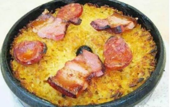 焗鸭饭是澳门前总督的御厨所发明。中国人吃鸭有很多方式,著名的莫如北京烤鸭。聪明的厨师还创作了物尽其用的吃法:片皮吃是前奏,接着拆肉炒丝或做鸭松包生莱吃,最后将骨熬汤,一鸭三吃,绝对不会“浪费”。葡国的焗鸭饭有异曲同工之妙,将鸭肉拆丝,鸭汤煮饭,加上葡国腊肠,放进焗炉,上桌时香气四溢,吸满鸭汁的米饭及金黄香脆的锅巴令人垂涎,饭有浓郁的独特的鸭擅味,饭中满是鸭肉丝,再吃一片咸香的葡国腊肠中和一下,即使不用菜,干食也足够美味。