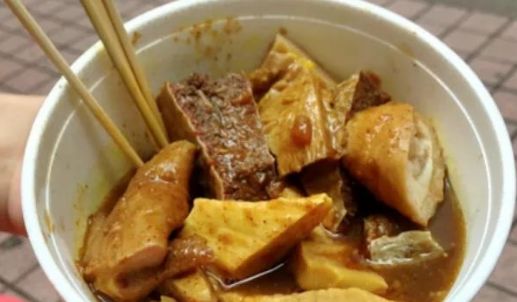 澳门热门的街头小食之一,其受欢迎程度绝不亚于葡式蛋挞。当你走在街上听见“咔嚓咔嚓”的声音,闻到空气中弥漫的阵阵咖喱香,那么毫无疑问,你一定是来到了牛杂摊档的附近。牛杂,就是牛肠、牛肚、牛百叶、牛肺、牛膀等牛内脏。看着老板把煮好的牛杂从热腾腾的锅中捞出,再用专门的剪刀娴熟地把牛杂剪成小块,像是一场精彩的表演。牛杂经耐心烹煮后,变得酥软而不烂,再浇上店家特制的咖喱酱汁,回味无穷。