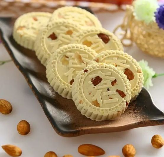 杏仁饼是澳门最有名的伴手礼之一,因其外形似杏仁,故称。原属家庭自作自食,以后仿制成为商品,外形改为圆形小饼。已有70余年历史。饼身松脆,饼心香甜,肥而不腻,入口融化,风味独到。好吃的杏仁饼不能用打饼机制作,会生硬难吃,一定要手工一敲一打做出来的饼才算正宗正货,口感才会松化。据说这里的杏仁饼,不仅光顾的客人喜爱,还漂洋过海受到海外华侨的青睐。杏仁饼外形非常精致,上面的花纹繁简适度,吃进嘴里,饼香四溢,不比丝滑的巧克力逊色。