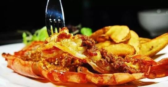 除了宵夜食水蟹粥外,辣大虾也是很经典的葡澳美食。以大蒜、辣椒、白酒和橄榄油等熬煮的「辣大虾」,绝对让你赞不绝口!