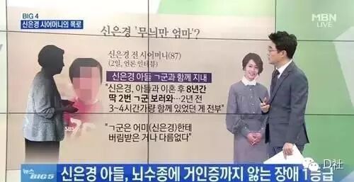 2日在SBS节目《深夜的TV演艺》播出的内容中,一名采访过申恩庆前婆婆的记者,爆料申恩庆弃养儿子多年,把养育的烂摊子都丢给前婆婆,令老人家相当气愤,表示并非讨厌无缘的媳妇才说出,“人做错了事,只是想说出事实而已”。