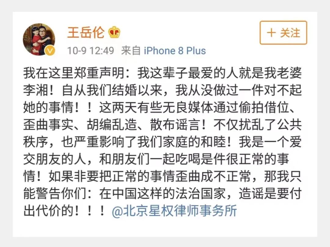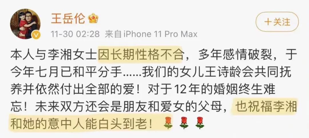 王岳伦发了篇声明,说和李湘长期感情不合,今年7月已经离了。