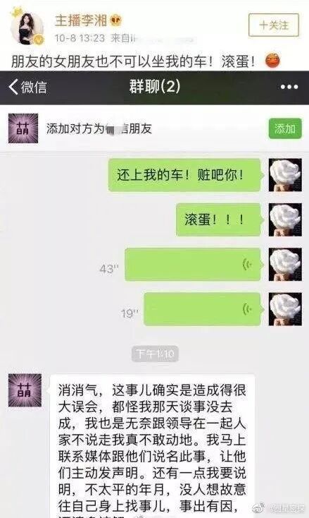 李湘:滚蛋,朋友的女友也不能坐我的车。