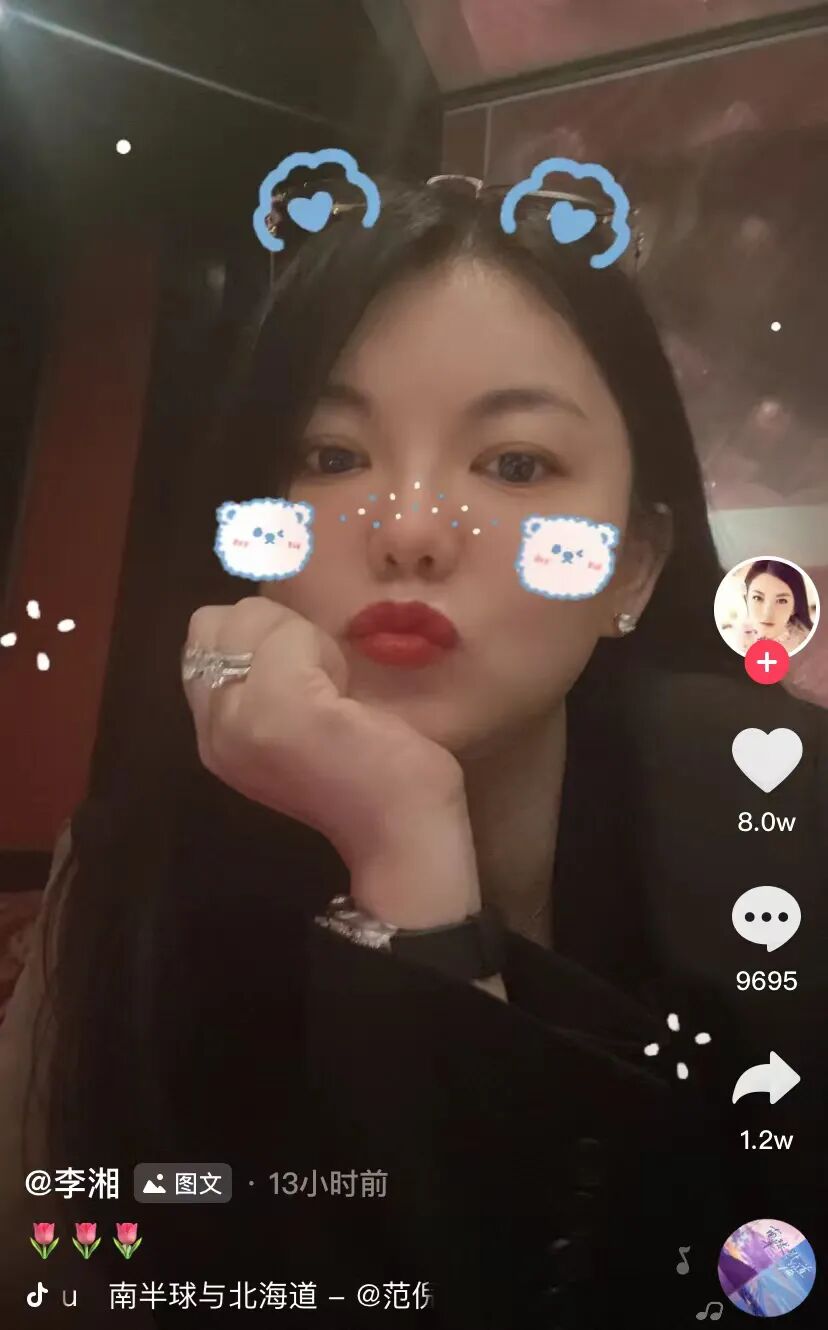 李湘那边,虽然至今微博没发声,但在dy上发了两张意有所指的照片,