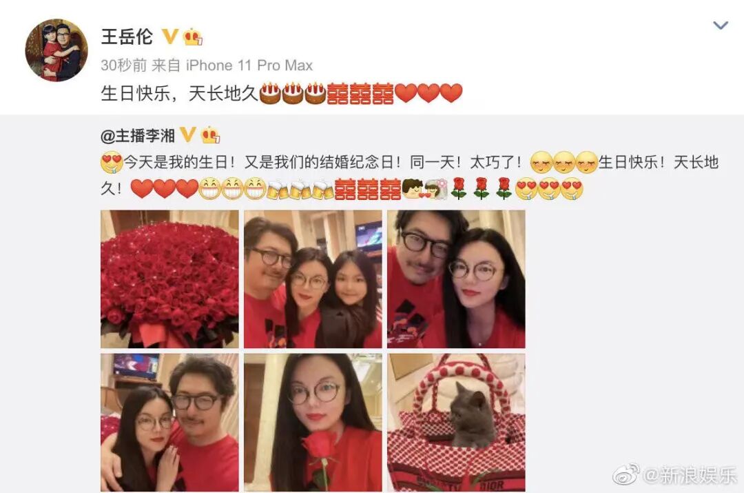 那天刚好是李湘直播间两周年,一进去就给老婆献上一束玫瑰,