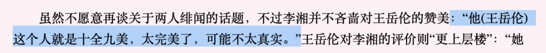 但李湘对他依旧给予了“完美到有点不真实”的极度肯定。