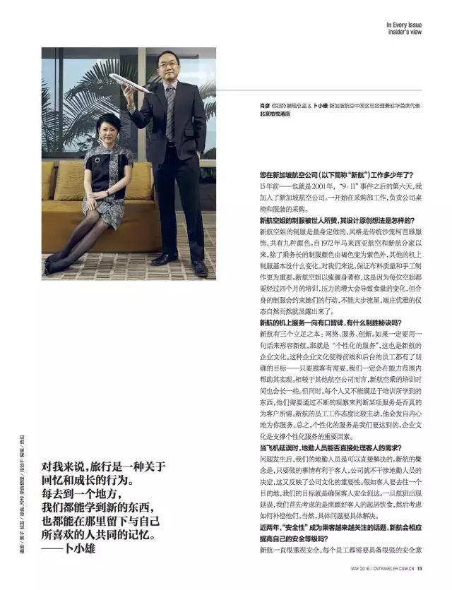 新刊|《悦游》三周年,和周迅一起在沙漠中奔跑起来吧! 悦游CondeNastTraveler 内地女星 2016-04-10 09:30:07 993 创作不易,用心坚持,欢迎请BaGua喝几杯爱心咖啡!打赏并支持本文 打赏并删除本文 当周迅遇见阿布扎比的沙漠,会碰撞出什么样的火花?《悦游》三周年纪念刊封面人物拍摄精彩花絮视频↓直接点击观看↓是的,不知不觉中,《悦游》已经三岁啦!3,944 间酒店、2,736 间餐厅、1,891 间店铺、1,624 个目的地...... 三年来,《悦游》一直坚持将每一个故事真实地呈现给读者。在这一次的三周年纪念刊里,诚意继续。我们将为你逐一揭开有关神州大地的 100 个秘密,伴你重游这个熟悉而又陌生的祖国, 同时,我们还请编辑部同事来讲了讲选题制作过程中的一些难忘的经历和感受。翻开五月新刊,《悦游》继续带你发现旅行的真谛。 (进入“悦游中国”订阅号更多精彩服务)▲《Condé Nast Traveler悦游》2016年5月刊封面摄影/Wing Shya创意总监/Vicson Guevara造型/Shawn Ong化妆/Yooyo Keong Ming发型/张凡 摄影助理/Samuel、FeiLong 本期特别推荐❶ 100个中国的秘密Special feature|100 secrets of China在周年特刊里,我们讲述了100个与中国有关的秘密。这其中,有铁艺、陶艺、漆艺等重获新生的中国传统手艺,有安徽绩溪、江西铅山、福建嵩口等深藏不露的中国秘境,有纽约、伦敦、巴黎和墨尔本等地融入全新设计及饮食理念的中国滋味,更有青城山六善、黄山悦榕庄、丽江大研安缦、恬居·云南香格里拉等看得见中国之美的度假酒店……编辑说@凌健:至于在杂志制作过程中对什么场景印象最深刻,我的答案可能会令你大跌眼镜——数数,从1数到100。为了确保这本杂志藏着100个秘密而不是99个或101个,我们像小学生一样,无数次地从1数到100,周而复始。有时秘密丢了1个,有时秘密多了2个,导致我们一度想回小学重学算术。所以,聪明的你,是时候开始复习一下童年时光了,跟着我,1、2、3、4、5、6……▲幕后花絮:本期杂志很壮观的杂志排版墙。❷ 主编圆桌In every issue|insider's view肖彦(《悦游》编辑总监)&卜小雄(新加坡航空中国区总经理兼驻华首席代表)“对我来说,旅行是一种关于回忆和成长的行为。每去到一个地方,我们都能学到新的东西,也都能在那里留下与自己所喜欢的人共同的记忆。”——卜小雄 ❸ 2016读者之选榜单Special feature|2016 Readers' Choice本次读者之选的调查开始于2015年11月 ,截至2016年3月,总共收到网络调查问卷上万份。在此基础上,我们又缩小样本范围,有针对性地在北京、上海、广州、深圳发出更详细的一对一问卷百份,最终得到了这份令人惊喜的结果,呈现在本期杂志上。 包括了最受欢迎的国家、地区、城市、海岛、航空公司、机场、邮轮、旅行社、在线旅行服务、酒店、水疗、旅行健康服务在内的最终榜单和专业分析。❹ 周迅|沙漠中的精灵Around the World|coverstory周迅曾经为录制节目在沙漠行走了六个小时,对这个荒芜却又壮观美丽的沙漠产生了深厚的感情。再次回到沙漠,个子娇小的她在旷大的沙漠里拼命地奔跑,背影越变越小,轮廓却越来越清晰。正如她所说:“现在的我,终于可以真正控制自己生活的速度。” ❺ 离地半尺Around the World|destinations阿布扎比神色复杂。每天,阿訇的召唤萦绕于耳,虔诚的信徒期盼回到真主的身边。而源源不断的财富又为这里带来西方文明:博物馆、高等教育、赛车、豪华酒店——阿布扎比正夹在神与众生之间,这是离地半尺之处。 编辑说@黄冠南:阿布扎比是个有趣的地方,位于阿拉伯半岛,毗邻波斯湾,这些曾在地理课本上出现的名词让这里十分神秘。游览大清真寺时,女生必须头裹黑纱,这又让人想起《国土安全》里的场景,或是CNN里的战地女记者。但这里毕竟不是国际新闻里的“中东”,来自世界各地的人构成这里90%的常驻人口,也让阿布扎比成为阿拉伯半岛上的和平绿洲。西方文明在这里比伊斯兰文明更容易被察觉:即将盛大开幕的博物馆、已经存在的高等教育,还有数不胜数的豪华酒店。而正是两种文明的并驾齐驱让阿布扎比耐人寻味。❻ 海岸甜蜜生活Around the World|destinations在意大利北部皮埃蒙特平原和地中海之间,夹着狭长而崎岖的利古里亚海岸。在这里,你能找到梦想中所有类型的地中海小镇,梦幻或是朴实,犹如可以随时跳转的A、B面。 ❼ 里弄人情味Around the World|destinations在高速城市化带来的拆迁与翻新中,许多原住民不但在现实中遭放逐,还在记忆的家园里被驱赶。幸而,上海正在追寻更有人情味的旧区改造方式。值守老房子的人们,也正以自己的趣味营造着延续城市记忆的有机更新。 ❽ 中国味2.0时代Where What How|food & drink随着中国在海外影响力的增强,唐人街和中餐馆也跟随当地华人话语权的提升而进入一个新的时代。我们分别邀请了在墨尔本、伦敦、纽约、巴黎生活多年的中国作者,来探讨关于海外中餐传统与未来的一百种可能。 编辑说@朱芸芊:在国外吃中餐馆是一种怎样的体验呢?一般来说,我在国外出差或旅行时并不会特意去找中餐馆吃。这次为了采访和拍摄《中国味2.0时代》在墨尔本吃了两顿中餐,结果却好吃得出乎意料。我想,对于海外华人来说,正宗和美味是第一诉求。但是对于旅行者来说,我们真的需要飞十几个小时吃和国内一样的食物吗?对于认为中餐就是甜酸酱炒各种肉的外国人呢?我在和Ruyi Modern Chinese的创始人