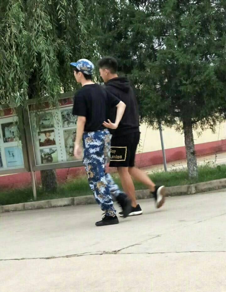 王俊凯穿着军训服,和一名男生一块走着。看上去是新交的朋友吧,他说过军训是个交朋友的机会,所以十分珍惜这次军训的机会,想和大家一样融入班级,开始的时候或许同学们不敢接近他,但是几天过去,他已经做到和同学们一块了。