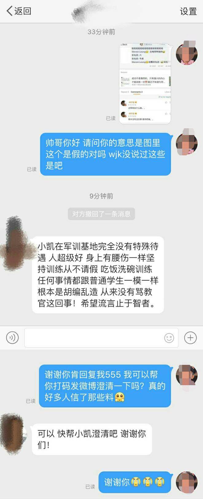 在军训期间,更有另一个学校的同学表示,自己偶遇到王俊凯和同学在一起。