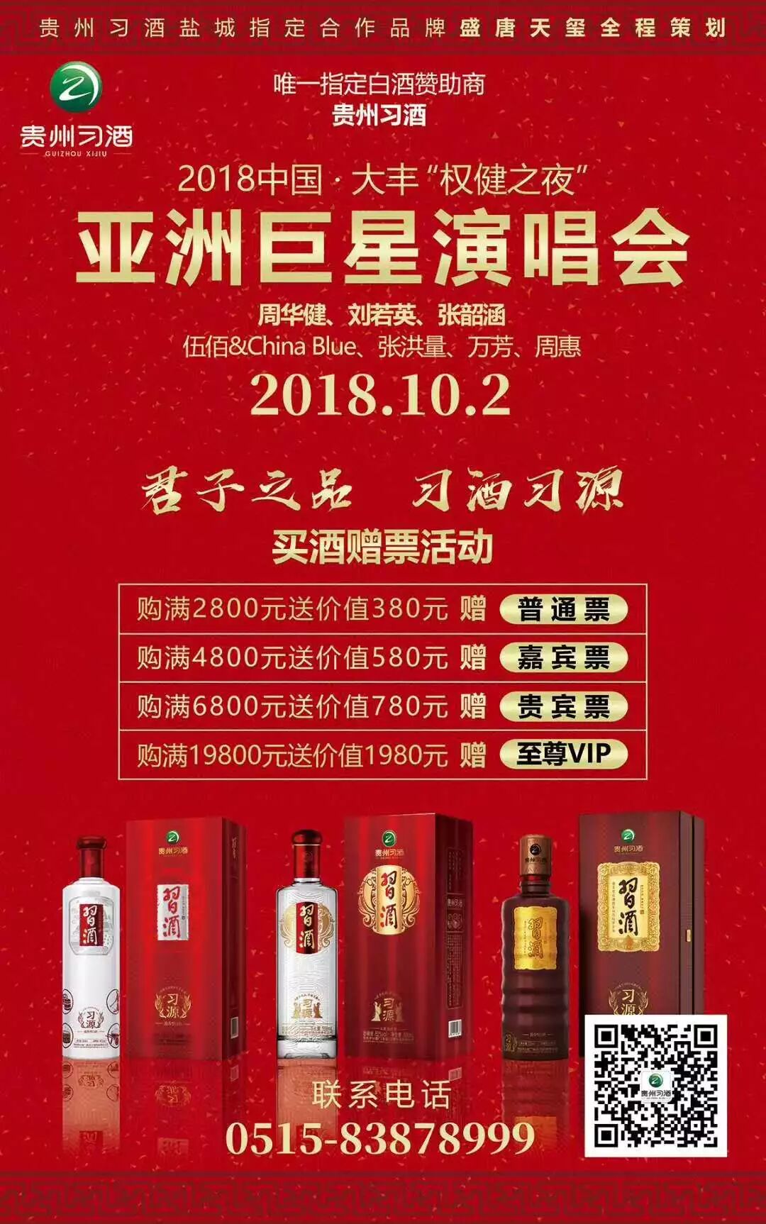 活动期间凡购买贵州习酒•习源系列白酒,即可获赠2018中国•大丰亚洲巨星演唱会门票。