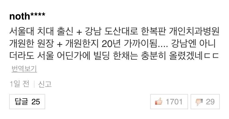1.首尔大学牙科出身+江南个人牙科医院院长+医院开了有近20年...即使不是江南,不管是首尔哪个地方的大厦,她有充分的资金可以买下呢