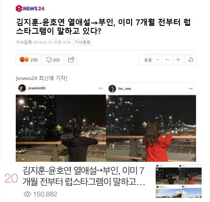 (近日,演员金志勋和主播尹浩妍因为上传到各自SNS上的照片为同一地点所拍摄,因此被怀疑正在热恋中,15日,金志勋所属经纪公司相关人士就此事作出回应表示“两人只是关系很好而已没有谈恋爱,两人确实一同前往的济州岛,但是和其他朋友一块儿同行的”)