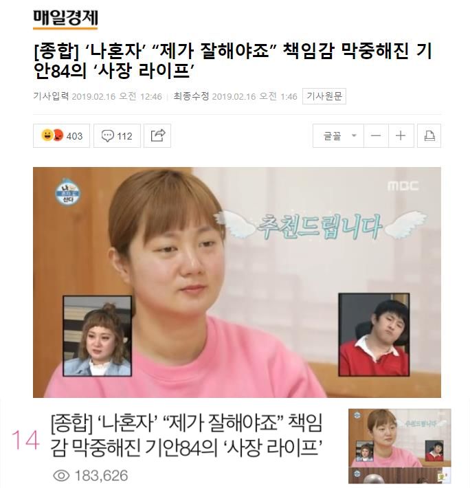 (15日播出的《我独自生活》公开了朴娜莱在寺庙的参禅的内容;也公开了旗安84公司的生活,旗安84和员工聚餐,听取他们的意见,并透露了对于自己漫画的迷茫等。)
