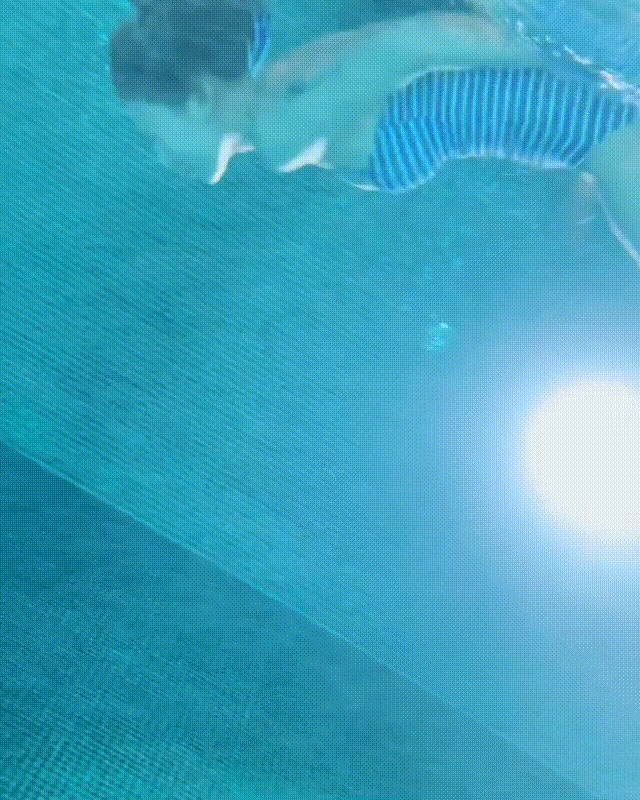 而泫雅也不忘曝光自己的泳装照,发出水下游泳的影片,身穿蓝色条纹高衩泳装,在水中恣意踢水,秀出纤细四肢和完美身材。