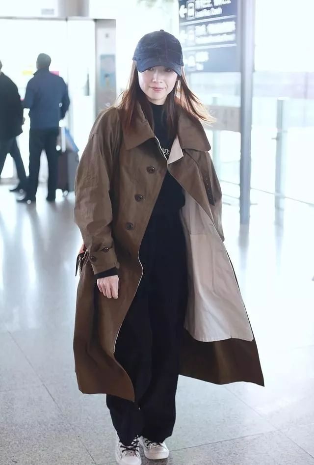 长款风衣,搭配白色平底鞋,董洁穿衣还是比较追寻舒适度的。宽松有型的设计,让自己女人味十足,瞬间得到大众的喜爱。